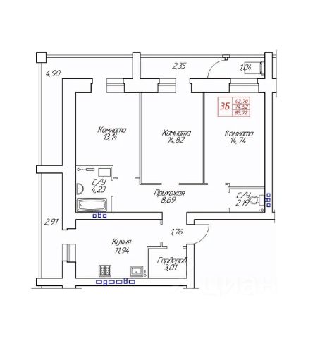 Имеется кладовка которую можно переделать в гaрдepoбную. Тем самым вы освобождаете площадь комнат от шкафов.