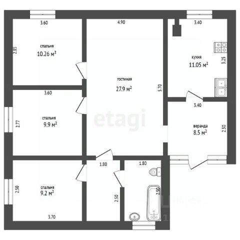 ДОМ ОТ ЮР.ЛИЦА, ПОДХОДИТ ПОД СЕМЕЙНУЮ ИПОТЕКУ! Одноэтажный коттедж площадью 90 кв. м расположен в черте города, что обеспечивает удобную транспортную доступность и близость к инфраструктуре. Дом размещен на участке 8 соток правильной формы, отсыпанном и выровненном, что упрощает дальнейшее благоустройство. Размеры здания — 8,512 м, материал стен — полистиролбетонные блоки D300 с готовым фасадом, сочетающие прочность и энергоэффективность. Фундамент выполнен в виде монолитной плиты толщиной 300 мм, обеспечивающей устойчивость и долговечность конструкции. Перекрытия и перегородки толщиной 200 мм, утеплены минераловатными плитами 250 мм, что гарантирует комфортный микроклимат в любое время года. Кровля вальмовая с утеплением 200 мм (каменная вата), что снижает теплопотери и повышает энергоэффективность дома. Система отопления включает электрический котел Vilеnt с разводкой по всем помещениям и теплыми полами, обеспечивая равномерный обогрев. Инженерные коммуникации автономные: скважина и септик, что делает проживание полностью независимым от центральных сетей. Объект подходит для оформления семейной ипотеки под 6%, что делает его привлекательным вариантом для покупателей. Дом готов к финишной отделке, дизайн выбираете Вы, а не переплачиваете за чужие фантазии. Участок позволяет организовать зону отдыха, сад или парковку. Для демонстрации объекта доступен гибкий график просмотров. Также рассматриваем варианты обмена или взятия вашей недвижимости на реализацию в счет покупки. Для клиентов компании "Этажи" доступны специальные условия по ипотеке от банков-партнёров, юридическое сопровождение сделки и гарантия её чистоты. Работаем прозрачно и профессионально — обращайтесь в удобное время с 9:00 до 20:00. Код пользователя: 84435 Номер в базе: 9202422
