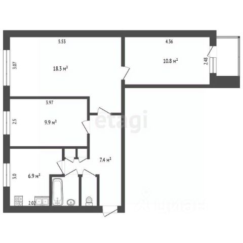 Площадь: 65,4 / 42,7 / 7,4 + лоджия 6
