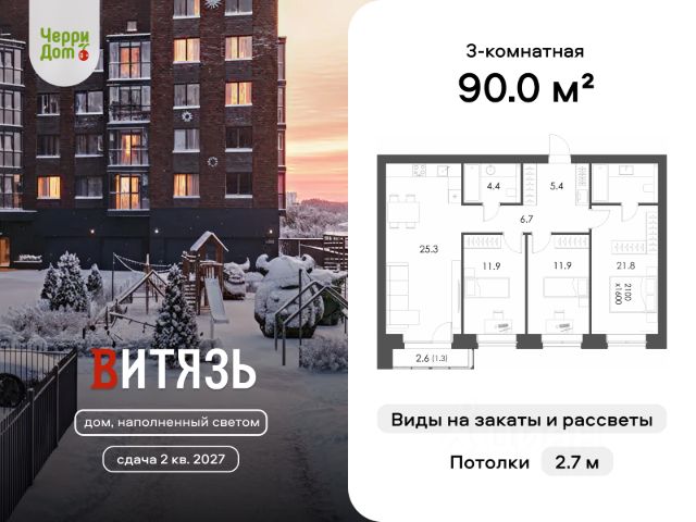 Продаётся квартира 9 в жилом комплексе "Витязь 4" от застройщика ЧерриДом. В доме 51 квартира, четыре этажа, гаражи на первом уровне и закрытый двор. Квартира Квартира наполнена светом и пространством. Расположена на 3 этаже, общая площадь — 105.9 м². Потолки 2,7 м, большие окна и витражное остекление лоджии дают много естественного света. Пространство работает на ежедневные сценарии: кухня-гостиная — место для семьи, где готовят, разговаривают и проводят вечера; мастер-спальня с личным санузлом — территория взрослых; гардеробные и постирочные — порядок без лишних шкафов в комнатах; ниши под встроенную мебель — интерьер собирается аккуратно и логично. Дом В "Витязе 4" всё построено вокруг тишины и долговечности. Межквартирные стены из керамического кирпича, усиленная шумоизоляция пола, индивидуальная вентиляция без соединения с соседями. Горизонтальная разводка отопления, умные счётчики и поквартирный учёт тепла — платите только за своё потребление. На верхнем этаже есть квартиры со вторым светом и потолками до 5,6 м с выходом на собственную террасу на крыше — редкий для города формат, который приближает ощущение к жизни в своём доме. Двор и авторский сад Территория закрыта и полностью освобождена от машин. Двор задуман как авторский сад: многоуровневое озеленение, взрослые деревья, цветущие кустарники и сезонные растения создают ощущение парка у дома. Пешеходные дорожки из брусчатки, места для отдыха, навесы и световые сценарии делают пространство комфортным в любое время дня. Гаражи и парковка В "Витязе 4" предусмотрены 16 индивидуальных гаражей и парковочные места на территории. Локация Улица Гагарина — сложившийся район: школы, супермаркеты, стадион и бассейн "Витязь", Ковыринский сад с прудом. О застройщике ЧерриДом ЧерриДом более 15 лет строит в Вологде дома в формате бизнес-класс с вишенкой. Покупка по ФЗ-214 через эскроу-счёт в Сбербанке. Время увидеть вживую Запишитесь на персональную экскурсию. Добавьте объявление в избранное , чтобы вернуться к нему позже.