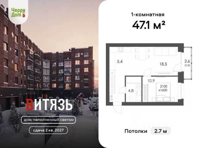 Продаётся квартира 34 в жилом комплексе "Витязь 4" от застройщика ЧерриДом. В доме 51 квартира, четыре этажа, гаражи на первом уровне и закрытый двор. Квартира Квартира наполнена светом и пространством. Расположена на 3 этаже, общая площадь — 47.1 м². Потолки 2,7 м, большие окна и витражное остекление лоджии дают много естественного света. Пространство работает на ежедневные сценарии: кухня-гостиная — место для семьи, где готовят, разговаривают и проводят вечера; мастер-спальня с личным санузлом — территория взрослых; гардеробные и постирочные — порядок без лишних шкафов в комнатах; ниши под встроенную мебель — интерьер собирается аккуратно и логично. Дом В "Витязе 4" всё построено вокруг тишины и долговечности. Межквартирные стены из керамического кирпича, усиленная шумоизоляция пола, индивидуальная вентиляция без соединения с соседями. Горизонтальная разводка отопления, умные счётчики и поквартирный учёт тепла — платите только за своё потребление. На верхнем этаже есть квартиры со вторым светом и потолками до 5,6 м с выходом на собственную террасу на крыше — редкий для города формат, который приближает ощущение к жизни в своём доме. Двор и авторский сад Территория закрыта и полностью освобождена от машин. Двор задуман как авторский сад: многоуровневое озеленение, взрослые деревья, цветущие кустарники и сезонные растения создают ощущение парка у дома. Пешеходные дорожки из брусчатки, места для отдыха, навесы и световые сценарии делают пространство комфортным в любое время дня. Гаражи и парковка В "Витязе 4" предусмотрены 16 индивидуальных гаражей и парковочные места на территории. Локация Улица Гагарина — сложившийся район: школы, супермаркеты, стадион и бассейн "Витязь", Ковыринский сад с прудом. О застройщике ЧерриДом ЧерриДом более 15 лет строит в Вологде дома в формате бизнес-класс с вишенкой. Покупка по ФЗ-214 через эскроу-счёт в Сбербанке. Время увидеть вживую Запишитесь на персональную экскурсию. Добавьте объявление в избранное , чтобы вернуться к нему позже.