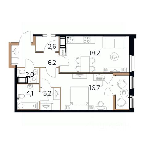 1-комнатная квартира 45,3 м² с отделкой White Box в "Доме на Окружном" от застройщика СК Булат. Особенности квартиры Просторная 1-комнатная квартира площадью 45,3 м² с современной планировкой: • Кухня-гостиная - 14,6 м² • Спальня - 17,2 м² • Прихожая - 4,5 м² • Санузел совмещенный: - 4,1 м² • Гардеробная - 3,3 м² • Просторный балкон - 5,2 м² Функциональная планировка подходит как для одного человека, так и для пары. Квартира светлая, с панорамным остеклением и возможностью зонирования пространства. Окна выходят во двор. Гардеробная. Отделка квартиры Квартира передаётся с отделкой White Box - это оптимальное решение для тех, кто хочет сэкономить время и ресурсы на черновые работы. В квартире выполнено: • Пол подготовлен к укладке напольного покрытия • Выровнены стены по маякам и подготовлены под обои или под покраску • Подведены все инженерные коммуникации • Установлены радиаторы • Электрический щиток заведен в квартиру • Установлена качественная входная дверь с надежным биометрическим замком Вы получаете "чистый лист" — готовую основу для финишной отделки без дополнительных затрат. О доме "Дом на Окружном" - это современный дом из керамического кирпича с закрытой благоустроенной территорией. Основные характеристики: • Переменная этажность: 6, 8 и 5 этажей • Материал стен: керамический камень • Фасад: клинкерный керамический кирпич лимитированной серии BRAER PRO, баварская кладка ЛСР • Современные, тихие, скоростные лифты • Немецкие окна с усиленным металлическим каркасом и двухкамерными стеклопакетами. Снаружи окна графитового цвета с бронзированным стеклом • Подъезды с дизайнерской отделкой • Автономная крышная газовая котельная - низкие коммунальные платежи Территория комплекса: • Закрытая дворовая территория • Современная детская и спортивная площадка • Озеленение, зоны отдыха • Велопарковки • Видеонаблюдение, система доступа через Face ID или мобильное приложение • Большое количество парковочных мест (87 мест на 82 квартиры) Инфраструктура: • Рядом гипермаркет "Лента", ТРЦ "Мармелад", школы 3 и 26, детские сады, поликлиника, областная детская больница • Удобный выезд на основные городские магистрали: Окружное шоссе, Пошехонское шоссе, ул. Возрождения • Остановка общественного транспорта в пешей доступности • Рядом с домом запланировано благоустройство нового линейного парка площадью 20 Га Как купить: • Беспроцентная рассрочка: Получите свою квартиру без лишних процентов • Ипотека: Выберите подходящую программу: Семейная ипотека 6%, военная ипотека, базовая ипотека со сниженной ставкой • Траншевая ипотека - оплачивайте квартиру поэтапно • Наличными • Материнский капитал — используйте средства материнского капитала в качестве первоначального взноса • Покупка с выделением детских долей — обеспечьте своим детям собственные доли в новой квартире • Трейд - ин, обменяйте свою старую квартиру на новую (индивидуальные условия) Работаем по 214-ФЗ Договор долевого участия оформляется в полном соответствии с Федеральным законом 214-ФЗ. Денежны