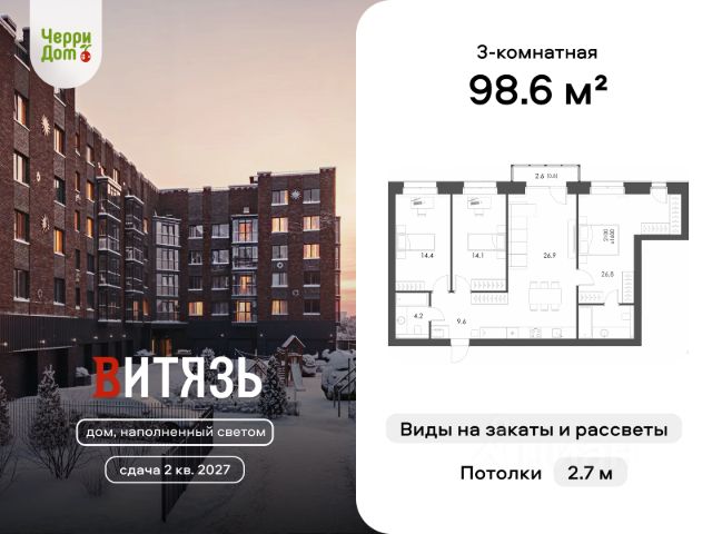 Продаётся квартира 7 в жилом комплексе "Витязь 4" от застройщика ЧерриДом. В доме 51 квартира, четыре этажа, гаражи на первом уровне и закрытый двор. Квартира Квартира наполнена светом и пространством. Расположена на 2 этаже, общая площадь — 98.6 м². Потолки 2,7 м, большие окна и витражное остекление лоджии дают много естественного света. Пространство работает на ежедневные сценарии: кухня-гостиная — место для семьи, где готовят, разговаривают и проводят вечера; мастер-спальня с личным санузлом — территория взрослых; гардеробные и постирочные — порядок без лишних шкафов в комнатах; ниши под встроенную мебель — интерьер собирается аккуратно и логично. Дом В "Витязе 4" всё построено вокруг тишины и долговечности. Межквартирные стены из керамического кирпича, усиленная шумоизоляция пола, индивидуальная вентиляция без соединения с соседями. Горизонтальная разводка отопления, умные счётчики и поквартирный учёт тепла — платите только за своё потребление. На верхнем этаже есть квартиры со вторым светом и потолками до 5,6 м с выходом на собственную террасу на крыше — редкий для города формат, который приближает ощущение к жизни в своём доме. Двор и авторский сад Территория закрыта и полностью освобождена от машин. Двор задуман как авторский сад: многоуровневое озеленение, взрослые деревья, цветущие кустарники и сезонные растения создают ощущение парка у дома. Пешеходные дорожки из брусчатки, места для отдыха, навесы и световые сценарии делают пространство комфортным в любое время дня. Гаражи и парковка В "Витязе 4" предусмотрены 16 индивидуальных гаражей и парковочные места на территории. Локация Улица Гагарина — сложившийся район: школы, супермаркеты, стадион и бассейн "Витязь", Ковыринский сад с прудом. О застройщике ЧерриДом ЧерриДом более 15 лет строит в Вологде дома в формате бизнес-класс с вишенкой. Покупка по ФЗ-214 через эскроу-счёт в Сбербанке. Время увидеть вживую Запишитесь на персональную экскурсию. Добавьте объявление в избранное , чтобы вернуться к нему позже.