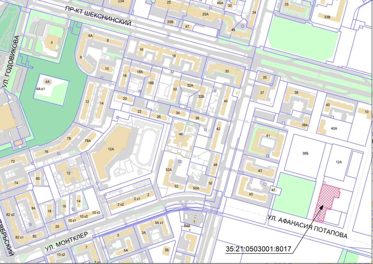 Земельный участок с кадастровым номером 35:21:0503001:8017, площадью 6769 кв. м, категория земель земли населенных пунктов, разрешенное использование - многоэтажная жилая застройка (высотная застройка)., местоположение: Российская Федерация, Вологодская область, городской округ город Череповец, город Череповец