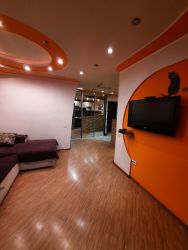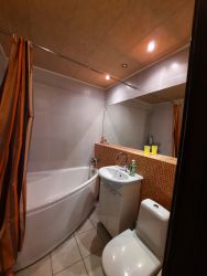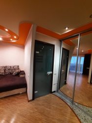 Уютная квартира с утепленным балконом, оборудованным под рабочее место. В квартире большой диван и односпальная кровать, отделенная от другой жилой зоны.Кухня оснащена всем необходимым. В 3 минутах ходьбы находится большая крытая парковка. В пешей доступностиТЦ, магазины, рестораны, автобусные остановки, городской суд.