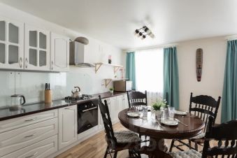 - Кухня с полным комплектом посуды, холодильником, электро чайником, микроволновкой.