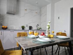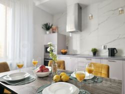 - Кухня с полным комплектом посуды, холодильником, электро чайником, стиральной машиной, микроволновкой, посудомоечной машиной