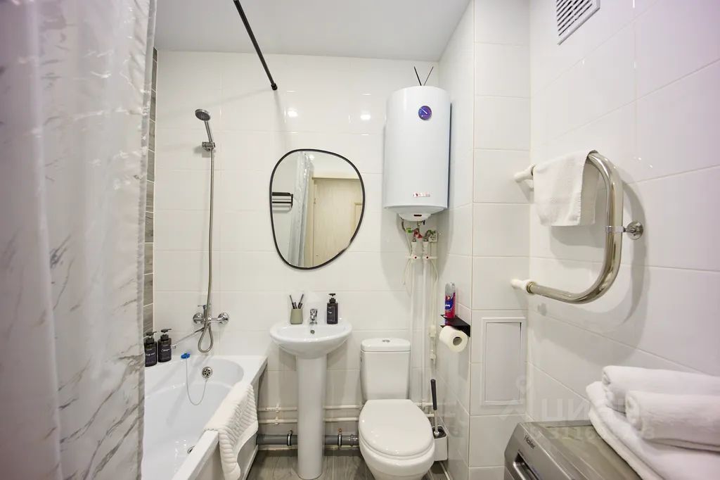 Ванная комната, укомплектованная феном и средствами для мытья волос и тела;