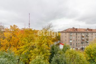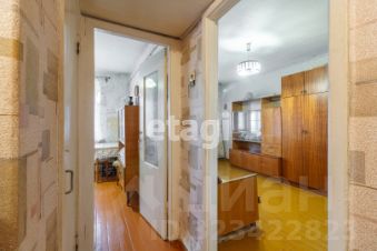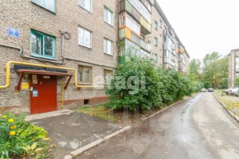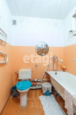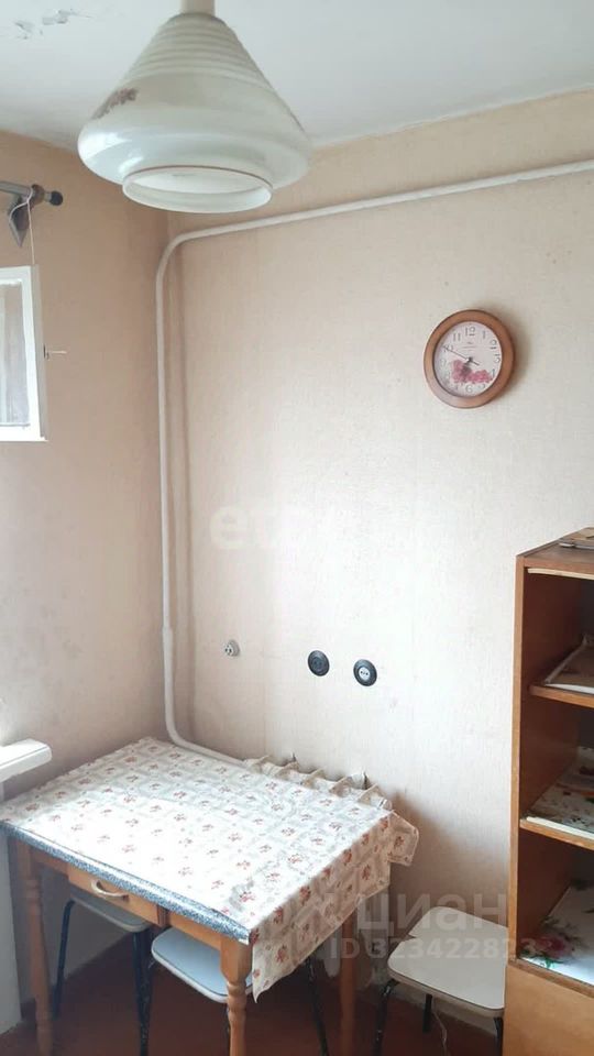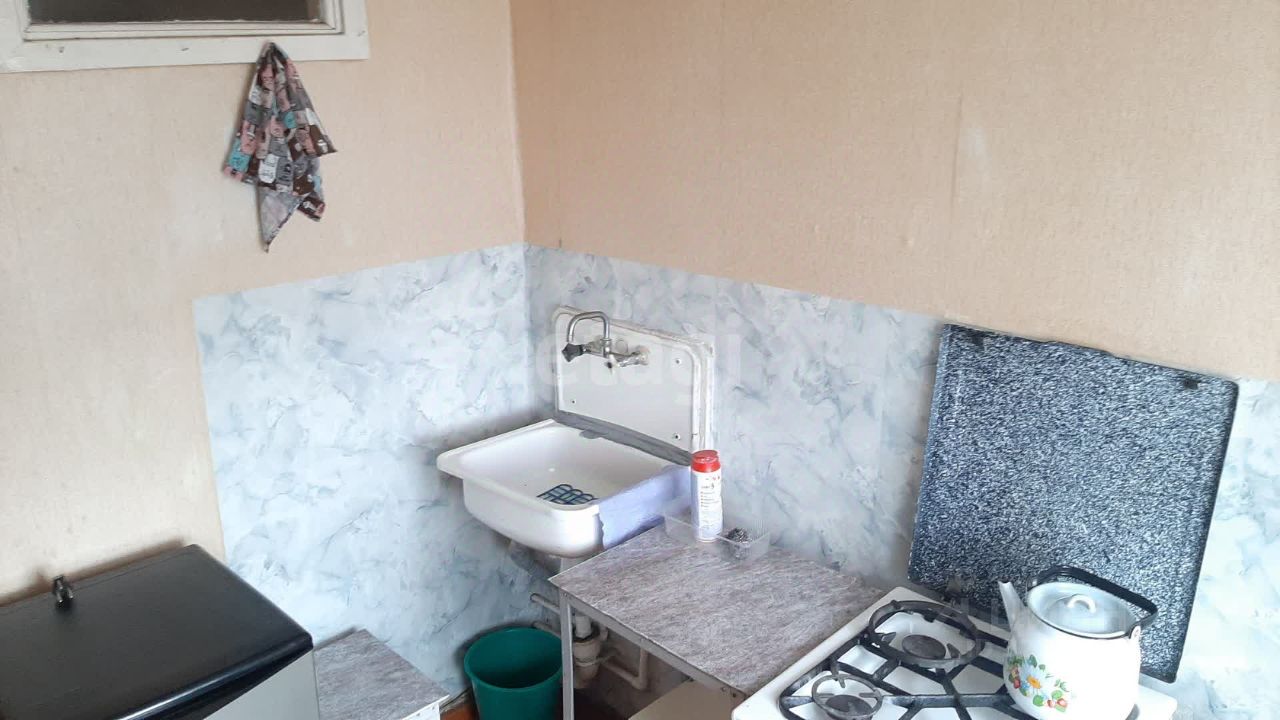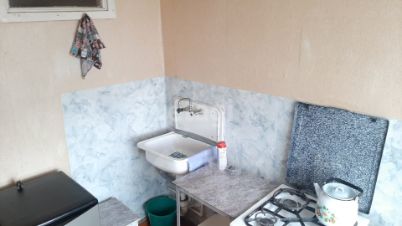 Комната просторная, площадь составляет 16,4 м², оборудованная мебелью: диван, стенка, шкаф, стол. Кухня функциональная, размером 6,9 м²: кухонный стол, табуретки, посудный шкаф, холодильник. В ванной комнате установлена стиральная машина.