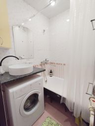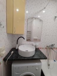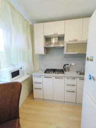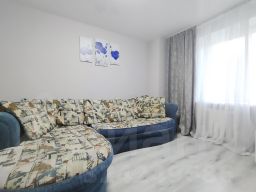 Двухкомнатные апартаменты вместимостью до 6 гостей. Спальные места: двуспальная кровать и 2 дивана. Гостям предоставляется постельное белье и полотенца. Все необходимое уже есть в квартире :оборудованная кухня, посуда, все для приготовления еды, микроволновка, телевизор, телевидение, ванна/душ, утюг, гладильная доска.