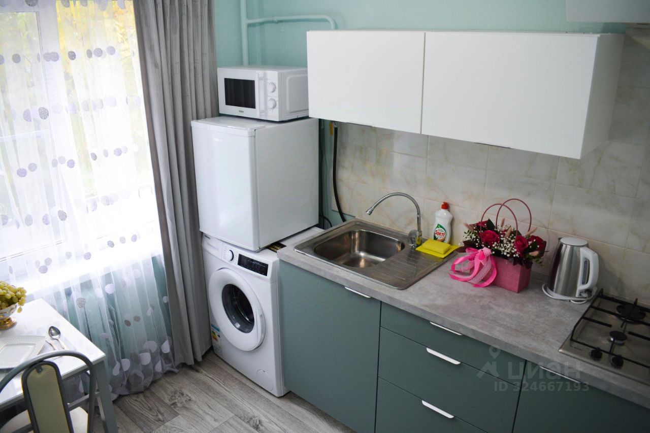 Вся необходимая техника: холодильник, стиральная машина, телевизор, микроволновка, фен и утюг.