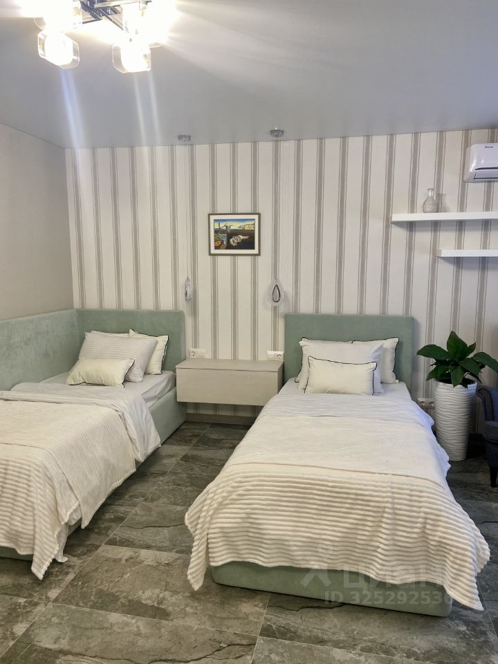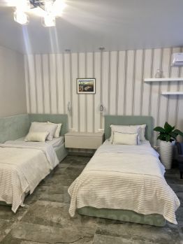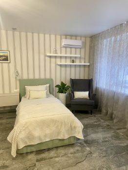 Квартира-студия устроена по типу двухместного гостиничного номера (твин). Небольшая кухня оснащена всем необходимым. В анной комнате есть душ, раковина, стиральная машина, унитаз. Квартира больше подойдет для некурящих гостей, так как нет балкона и иных мест для курения (только на улице).
