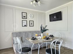 - Кухня с полным комплектом посуды, холодильником, электро чайником, микроволновкой.