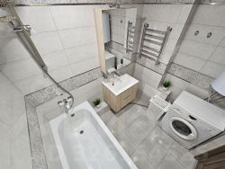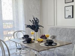 В квартире предусмотрены: 2 раздельных спальных места, белое постельное белье, комплект полотенец из 2 штук , кухня с полным комплектом посуды, холодильником, электро-чайником, микроволновкой, имеется утюг, фен, стиральная машина, телевизор, Wi-F, средства гигиены: шампунь и гель для душа. - Белое постельное белье. В стоимость включен комплект на кровать. За каждый дополнительный комплект берется доплата.
