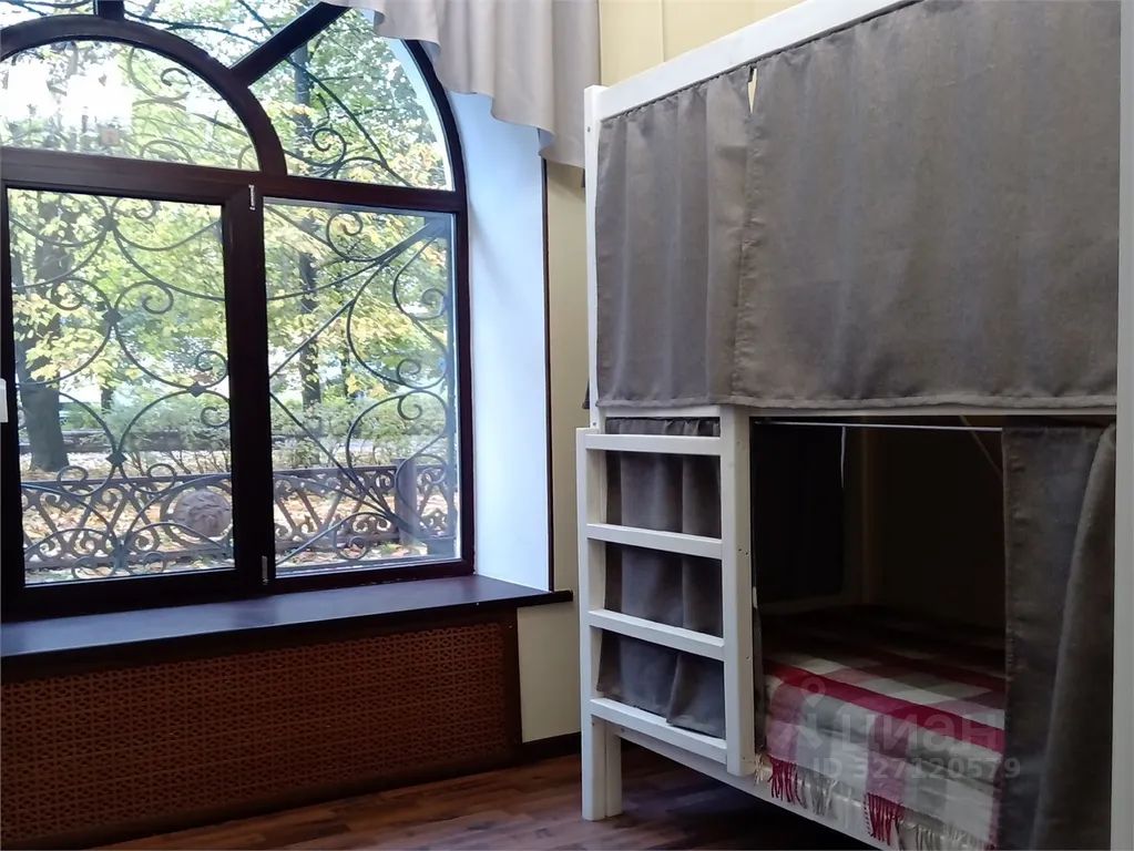 Высокие потолки и большие красивые окна с видом на городской сквер. На окнах установлены жалюзи-блэкаут.