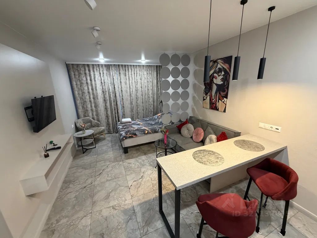 Полностью меблирована, есть всё для комфортного проживания: двуспальная кровать -1 шт, диван- 1 шт., телевизор.