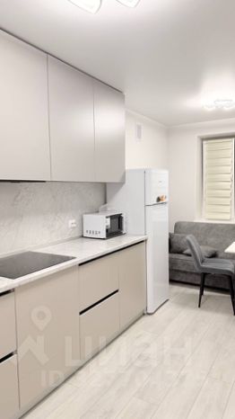 Квартира с евро ремонтом, светлая и просторная. В комнате установлен удобный диван и вместительный шкаф. Из мебели также имеется обеденный стол и стулья. На кухне современная бытовая техника: холодильник, плита, микроволновка и стиральная машина. Площадь кухни составляет 12 м².