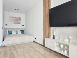 - 2 раздельных спальных места - двуспальная кровать, двуспальный диван.