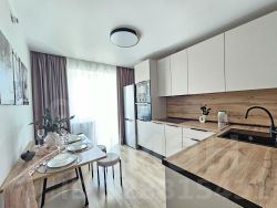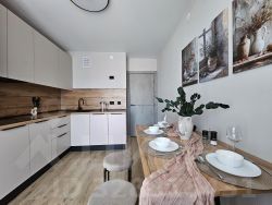 - Кухня с полным комплектом посуды, холодильником, электро чайником, микроволновкой.
