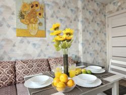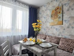 Квартира укомплектована всем необходимым для проживания: 2 раздельных спальных места - двуспальная кровать, двуспальный диван, белое постельное белье, комплект полотенец из 2х штук - для душа и для рук. Кухня с полным комплектом посуды, холодильником, электро-чайником, стиральной машиной, микроволновкой, имеется утюг, фен, телевизор, Wi-Fi. Имеется рабочее место. Средства гигиены: шампунь и гель для душа.