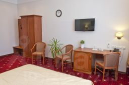 В номере, площадью 24 м², 2 кровати 90*200 см или 1 большая кровать 180*200 см, удобный рабочий стол, вместительный шкаф для одежды, кондиционер, холодильник, телевизор с функциями SMART-TV, интернет WI-Fi, телефон.