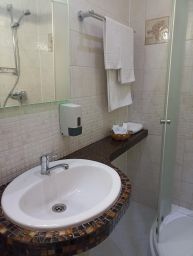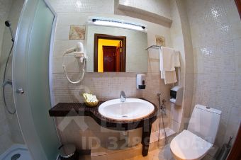 Ванная комната: душевая кабина, фен, комплект полотенец, халат, полный комплект гостиничной парфюмерии.