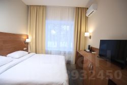 В номере шкаф, рабочий стол, широкая двуспальная кровать . Ванная комната оборудована современной сантехникой, имеется фен , полотенца и косметические принадлежности. Оснащение номера: кондиционер, кабельное телевидение, минибар, телефон с возможностью междугородной и международной связи, Интернет Wi-Fi. Общая площадь номера: 24,1 кв.м или 21,6 кв.м.