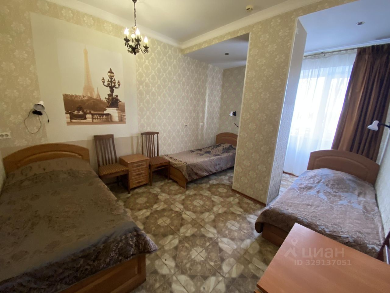 Трехместный номер с тремя односпальными кроватями.