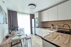 - Кухня с полным комплектом посуды, холодильником, электро чайником, микроволновкой.