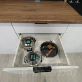 Всё необходимое для обеденной зоны - столовый набор, приборы, кастрюли, сковорода.