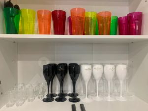 Кухня с комплектом посуды на 10 человек, холодильником, микроволновкой и плитой. Салатники и кастрюли, терка, дуршлаг.