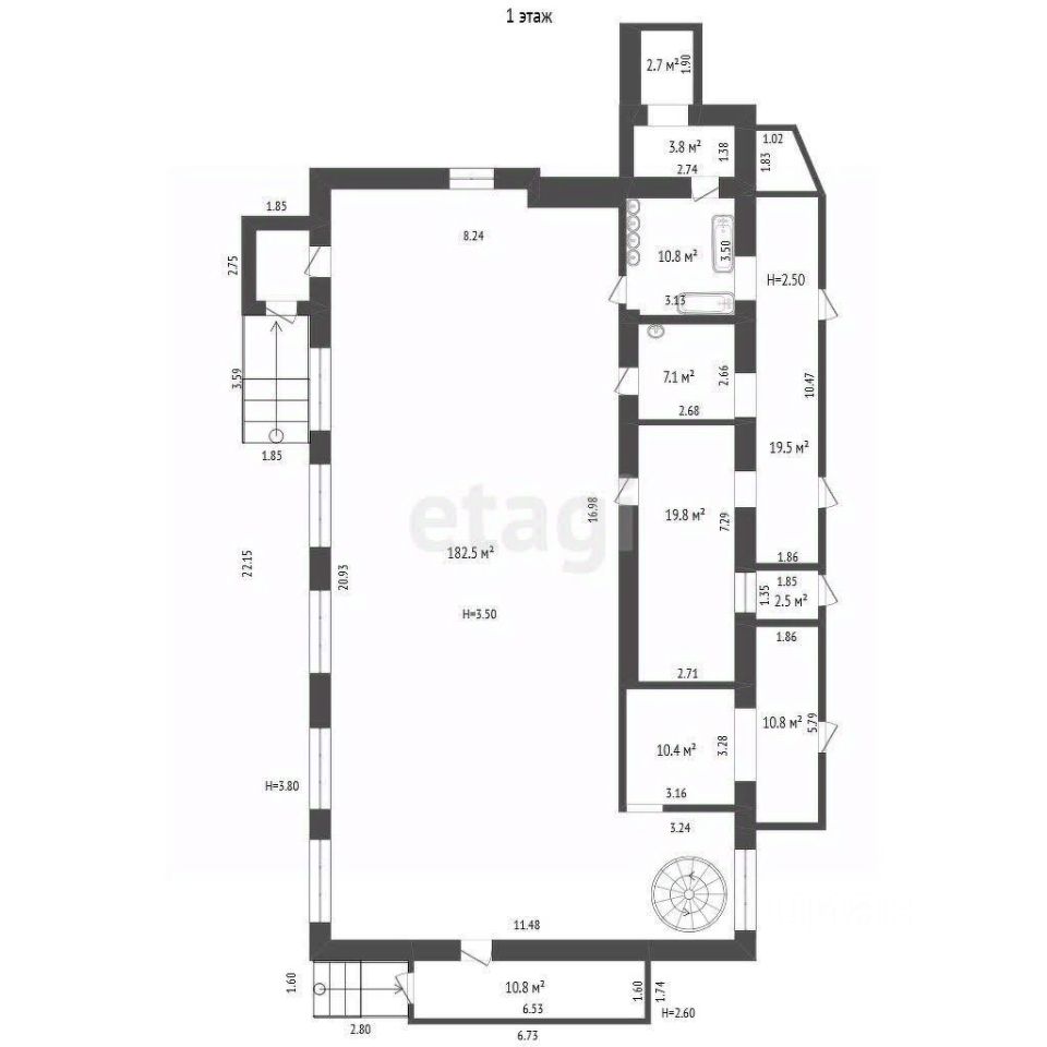Продается коммерческое помещение общей площадью 525,6 кв. метров, расположенное в отдельно стоящей пристройке с независимым входом. Объект состоит из двух уровней: цокольного этажа площадью 265 кв. метров и первого этажа площадью 260,6 кв. метров. Помещение идеально подходит для организации бизнеса с высоким трафиком клиентов или сотрудников.