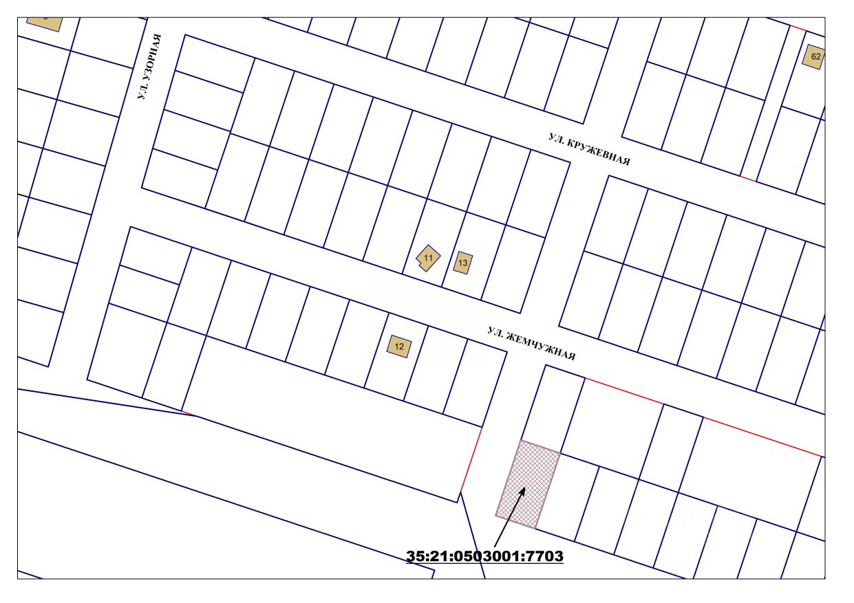 Земельный участок с кадастровым номером 35:21:0503001:7703 площадью 801 кв. м, категория земель - земли населенных пунктов, разрешенное использование: для индивидуального жилищного строительства, местоположение: Российская Федерация, Вологодская область, городской округ город Череповец, город Череповец