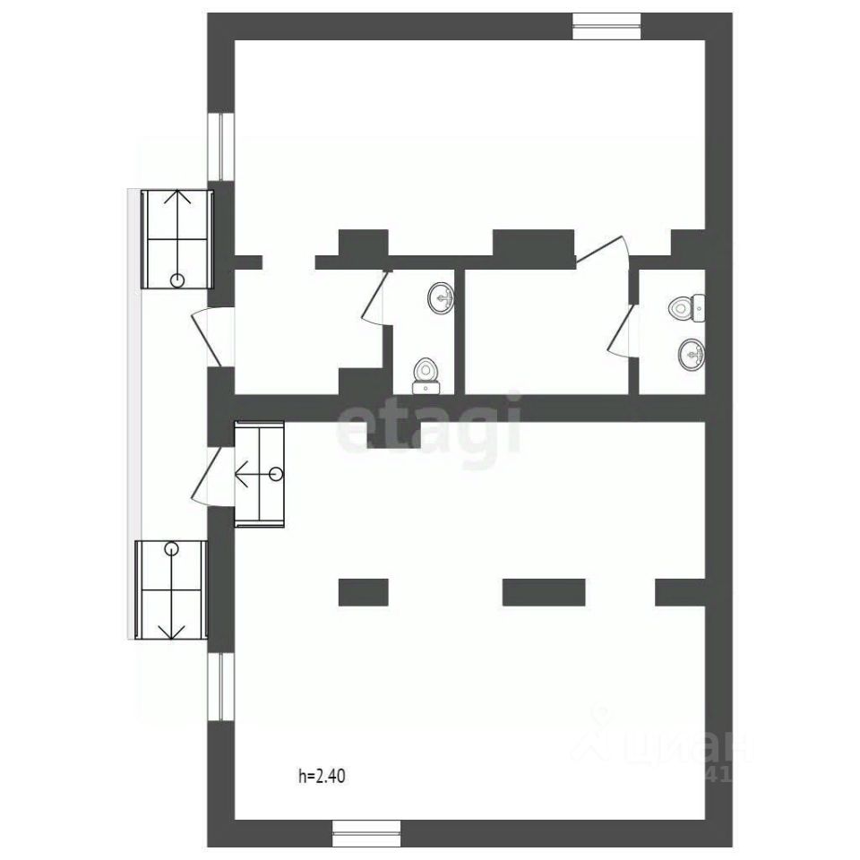 Планировка объекта наилучшая- два больших помещения и два подсобных. Два санузла.