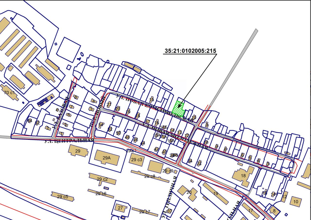 Земельный участок с кадастровым номером 35:21:0102005:215, площадью 1200 кв. м, категория земель - земли населенных пунктов, разрешенное использование: для индивидуального жилищного строительства, местоположение: Российская Федерация, Вологодская область, г. Череповец, ул. Новая Комсомольская.