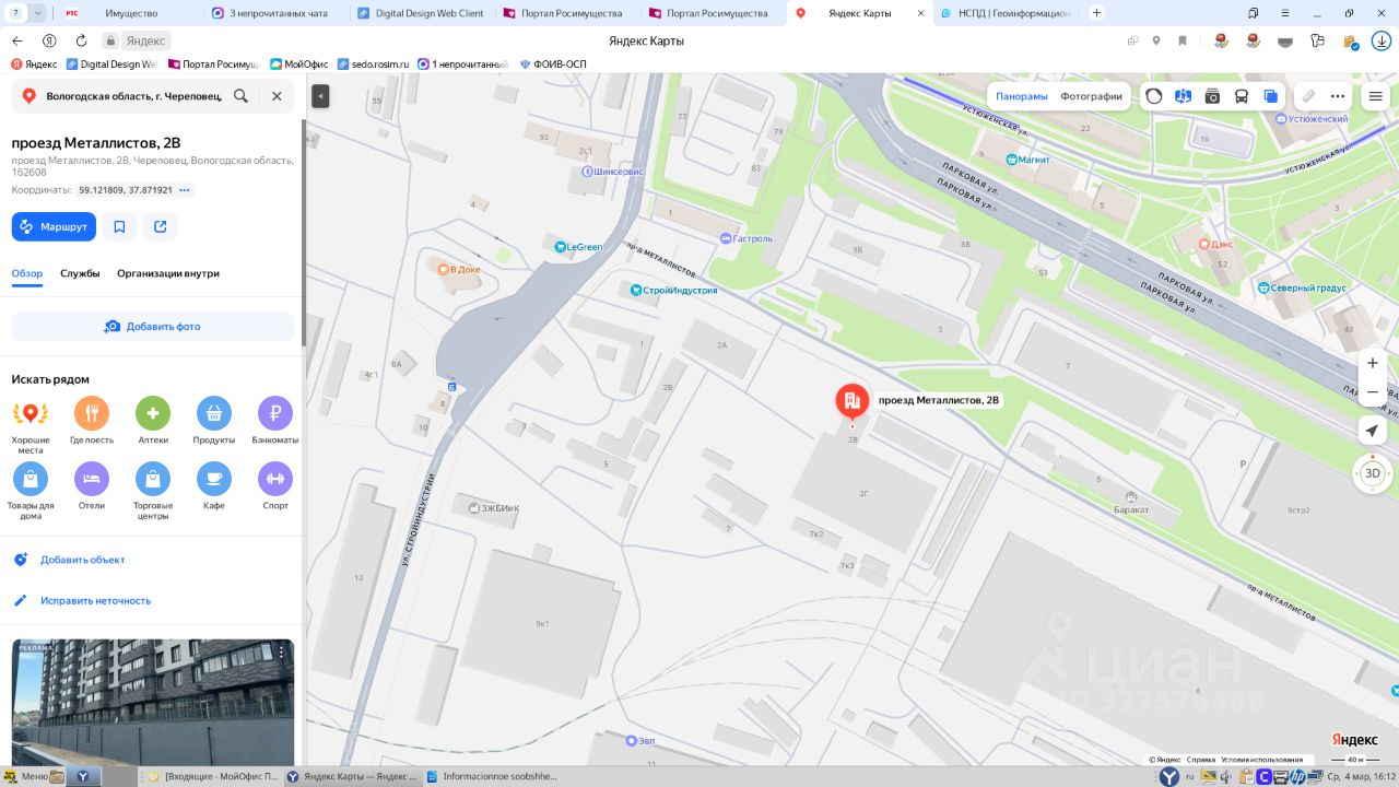 Нежилое здание, площадью 430 кв.м., кадастровый номер 35:21:0104005:76, расположенное по адресу: Вологодская область, г. Череповец, проезд. Металлистов, д.2в 1 Штука (шт)