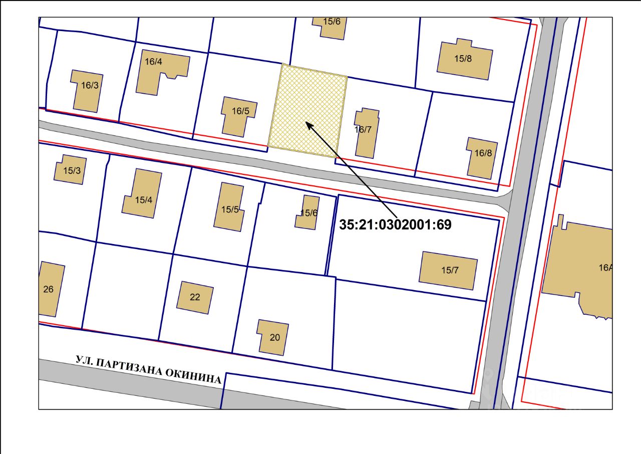 Земельный участок с кадастровым номером 35:21:0302001:69, площадью 551 кв.м, категория земель - земли населенных пунктов, разрешенное использование: благоустройство территории, местоположение: Вологодская область, г. Череповец, ул. 6-я линия, д. 16/6.