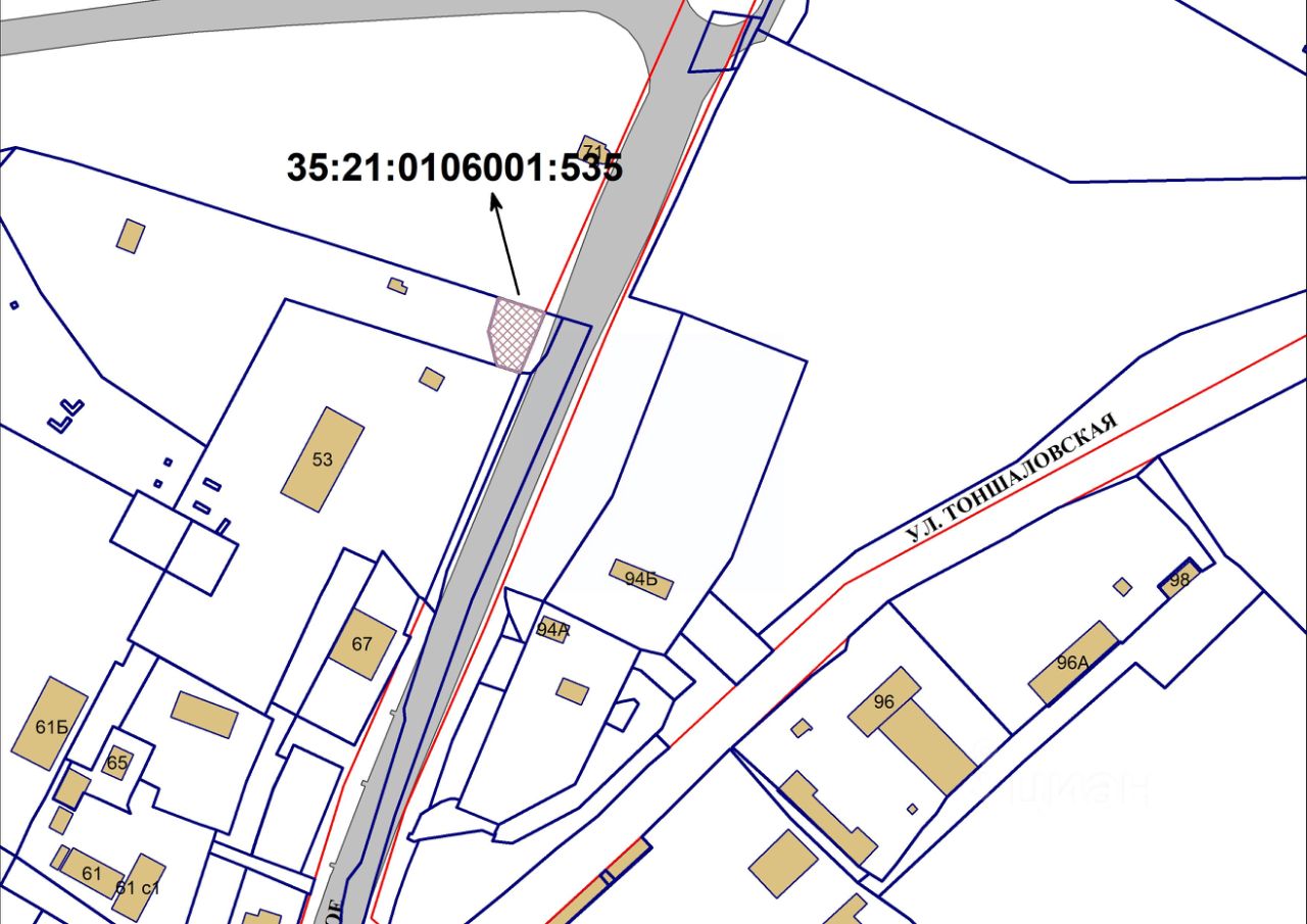 Земельный участок с кадастровым номером 35:21:0106001:535, площадью 517 кв. м, категория земель - земли населенных пунктов, разрешенное использование: благоустройство территорий, местоположение: Российская Федерация, Вологодская область, город Череповец, шоссе Кирилловское.