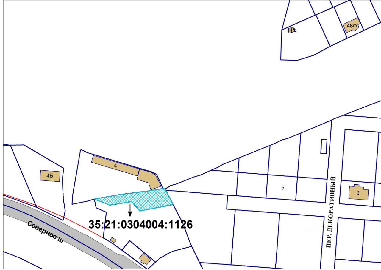 Земельный участок с кадастровым номером 35:21:0304004:1126, площадью 800 кв. м, категория земель - земли населенных пунктов, разрешенное использование: благоустройство территорий, местоположение: Российская Федерация, Вологодская область, город Череповец, шоссе Северное, земельный участок 2Б/1У.