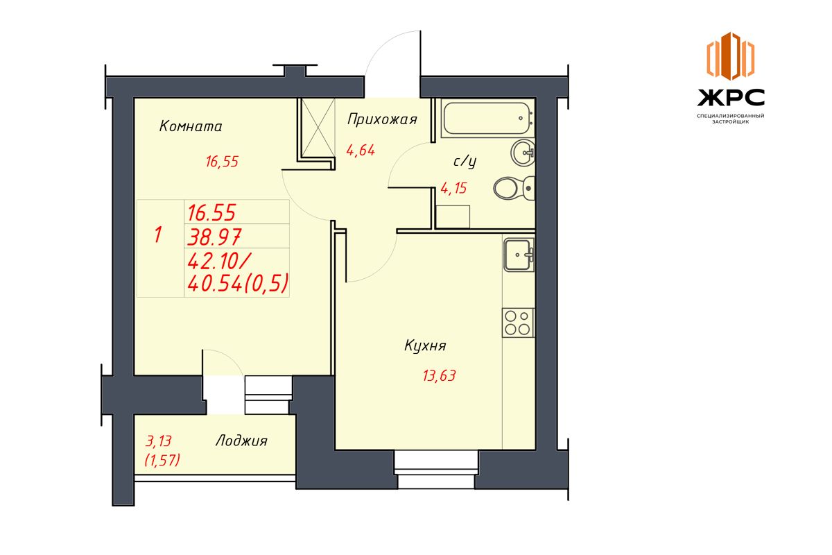Продается 1-комн. квартира, 40,54 м²