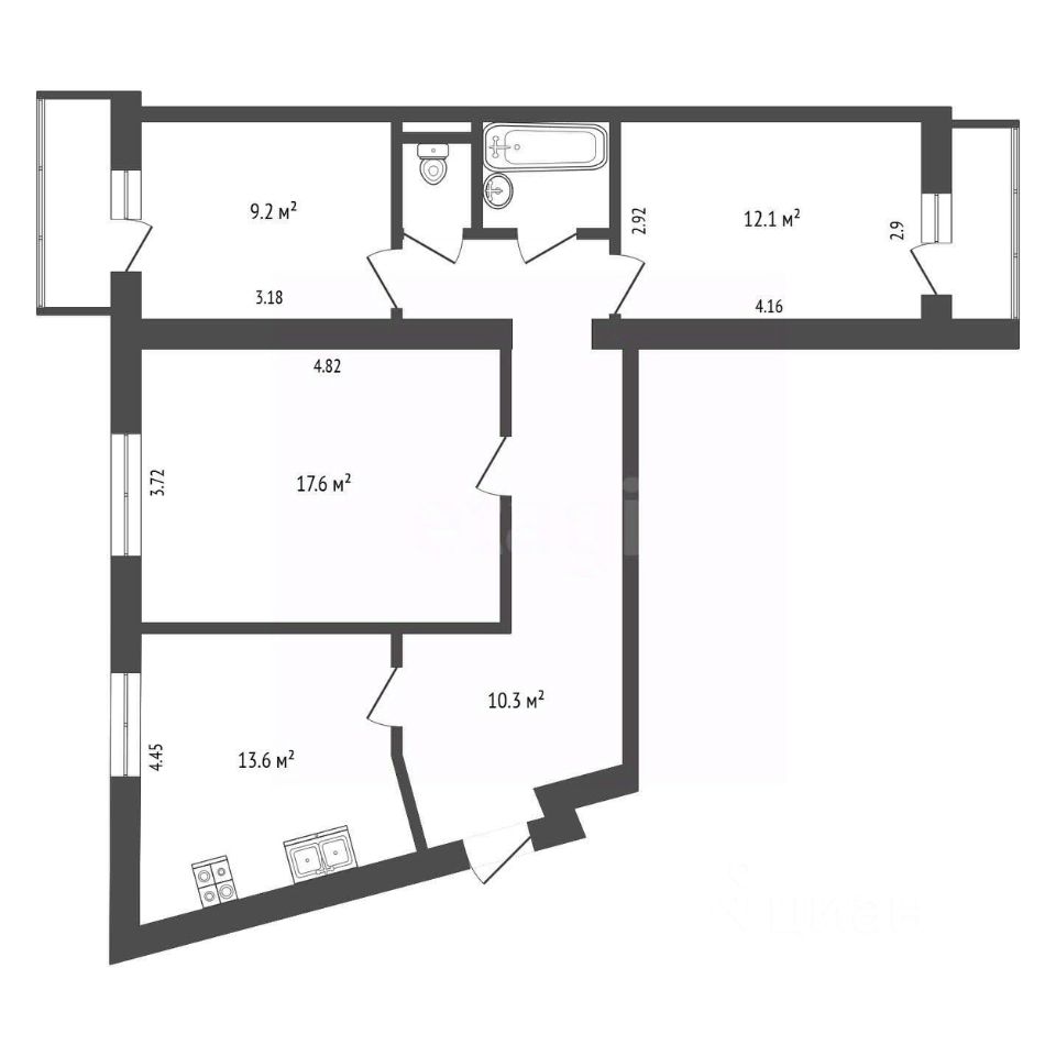Самым большим плюсом является то, что спальни отделены капитальной стеной от остальной части квартиры, а значит никакие посиделки с друзьями не помешают вашим детям (или наоборот).
