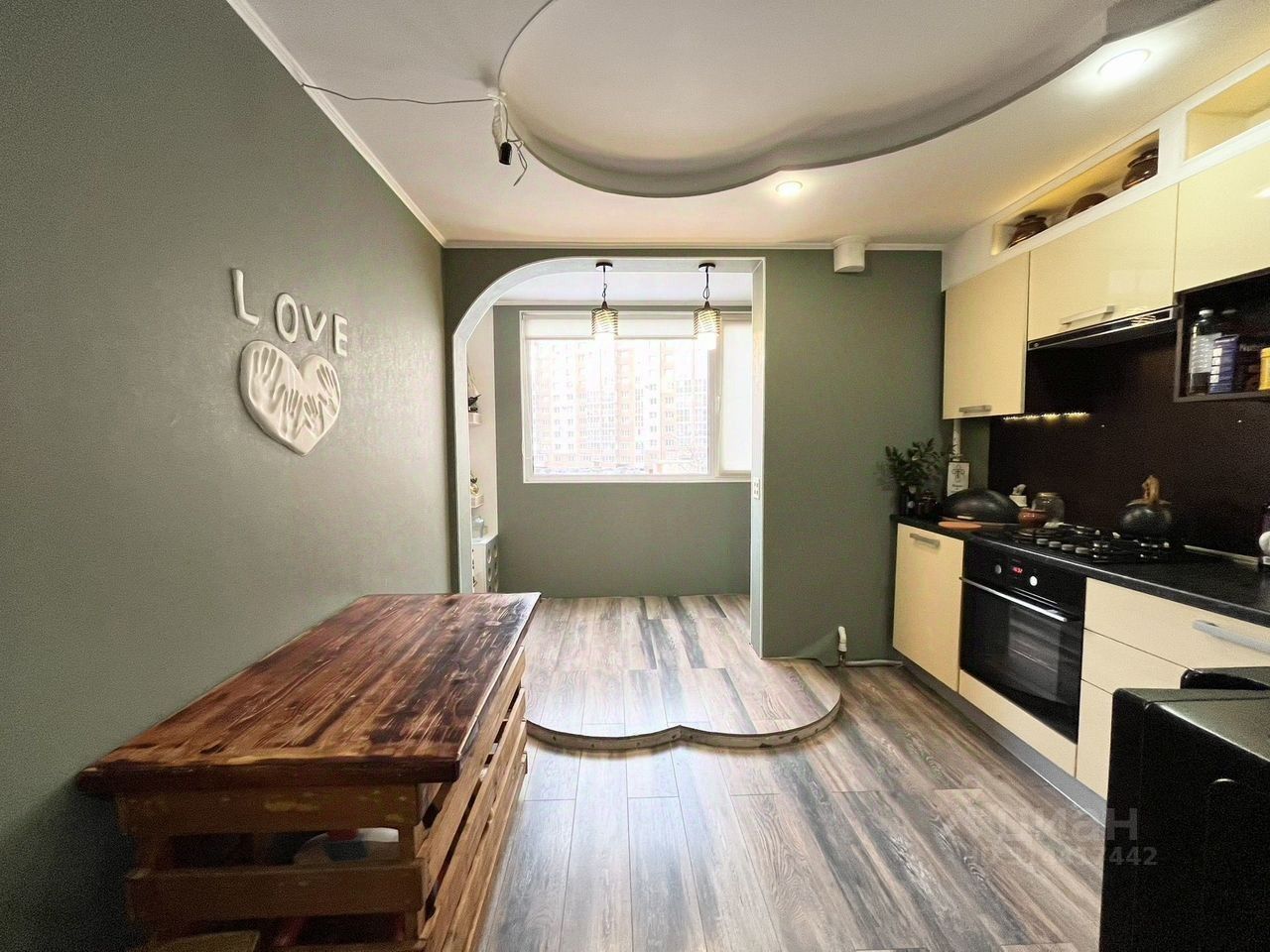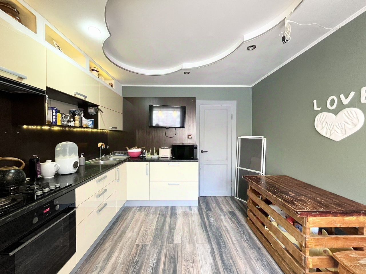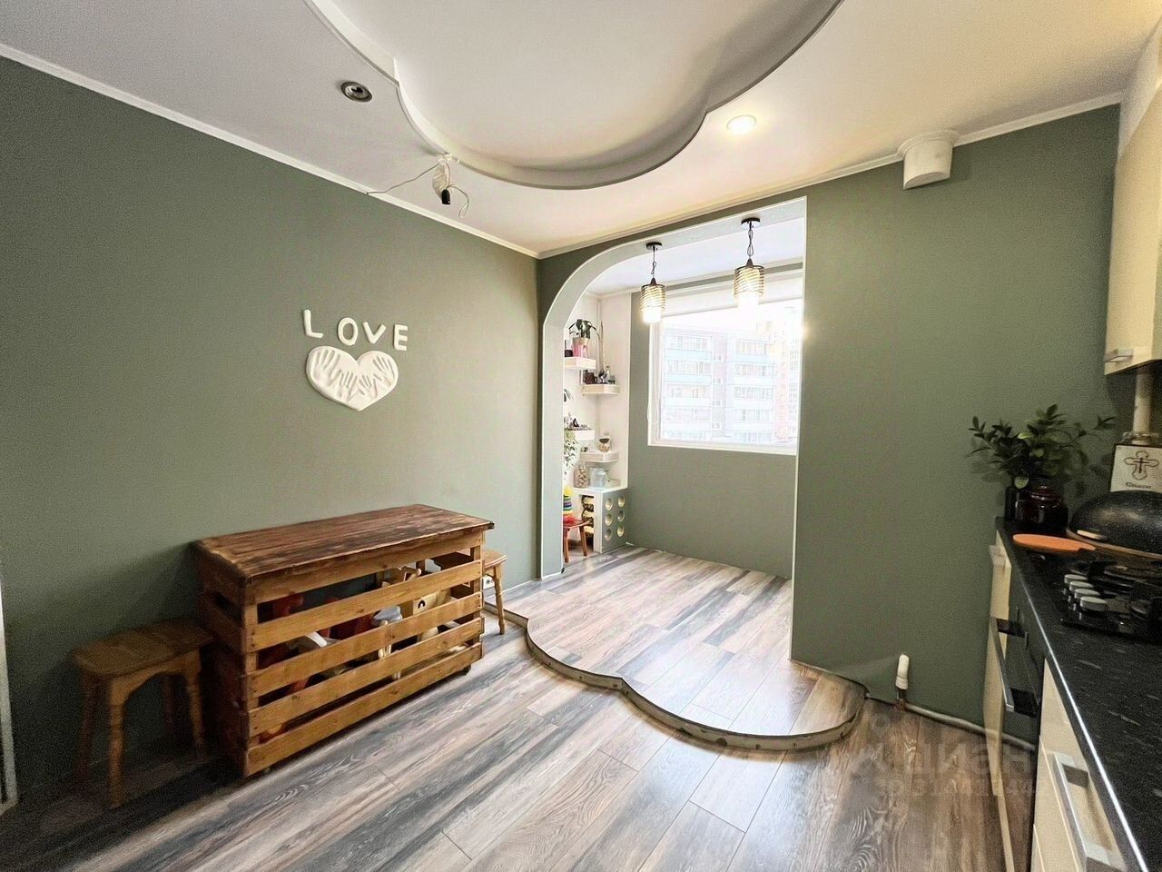В квартире выполнено объединение лоджии с кухней и комнатой.