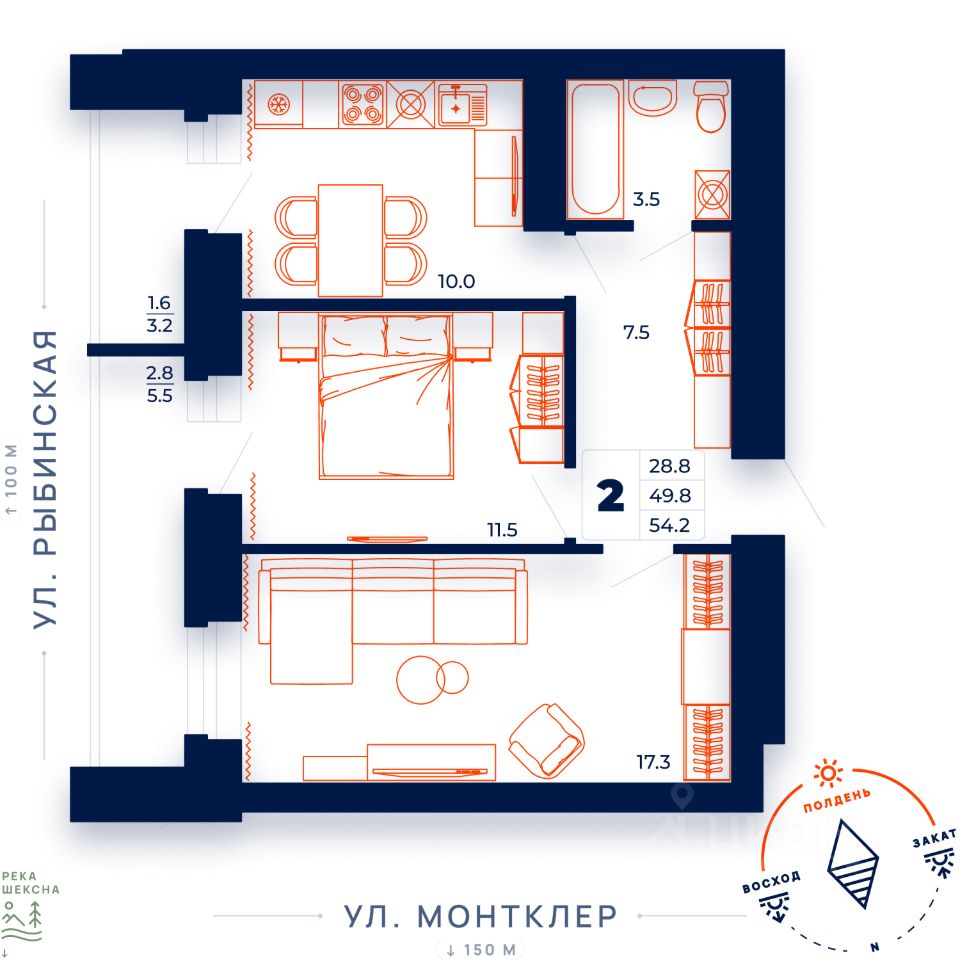 2-комн. от 54,2 м²