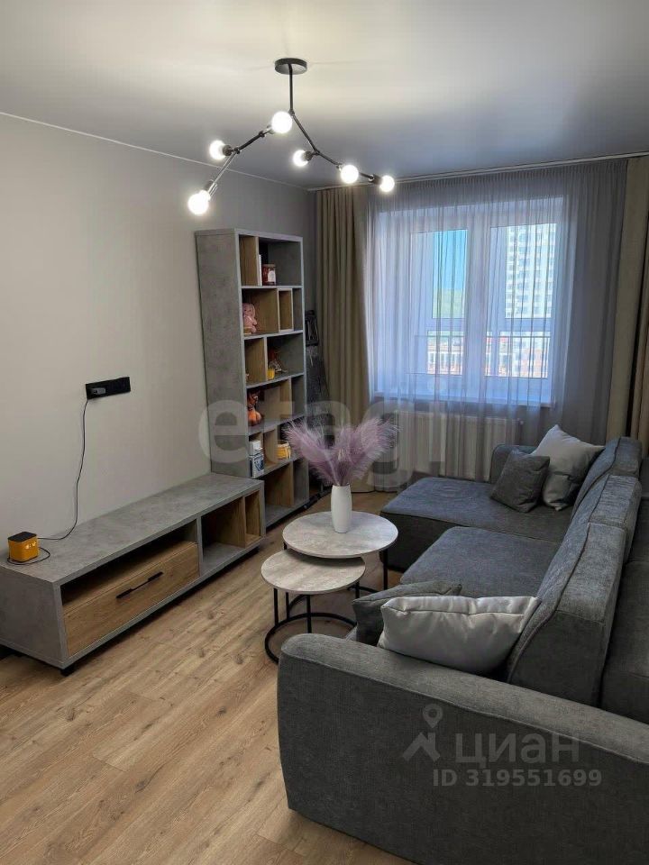 кв. м в кирпичном доме, расположенном в одном из самых перспективных районов города. В квартире выполнен качественный ремонт в стиле лофт с использованием современных материалов — сочетание бетонных фактур с деревянными элементами создает стильное и функциональное пространство. Полы покрыты износостойким ламинатом, установлены энергосберегающие стеклопакеты. Вся бытовая техника (холодильник, стиральная машина, плита) и мебель, включая диван-трансформер в гостиной и кровать с ортопедическим матрасом в спальне, остаются новому владельцу.