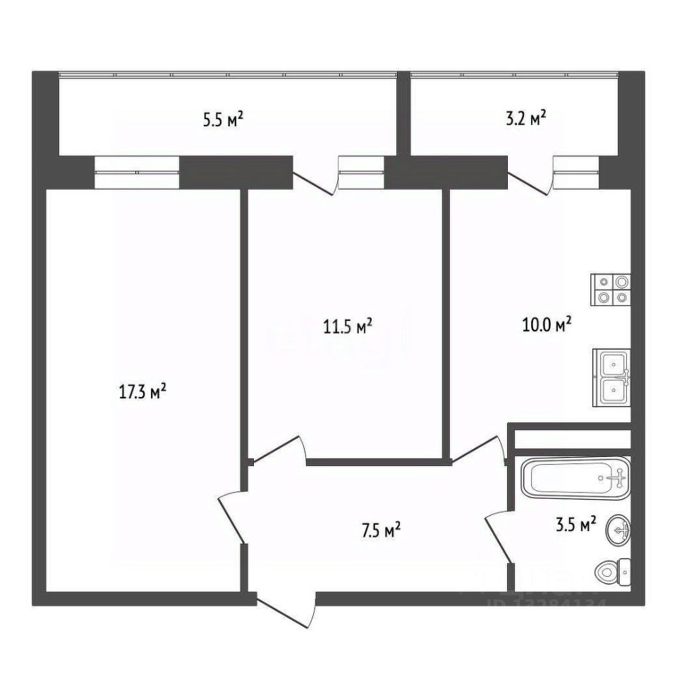 Продается двухкомнатная квартира площадью 54