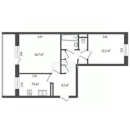 Просторная и светлая двухкомнатная квартира в доме 125-й серии расположена в тихом районе с развитой инфраструктурой и озелененной территорией. Общая площадь 48,8 кв. м грамотно распределена между изолированными комнатами, кухней 7 кв. м и совмещенным санузлом.