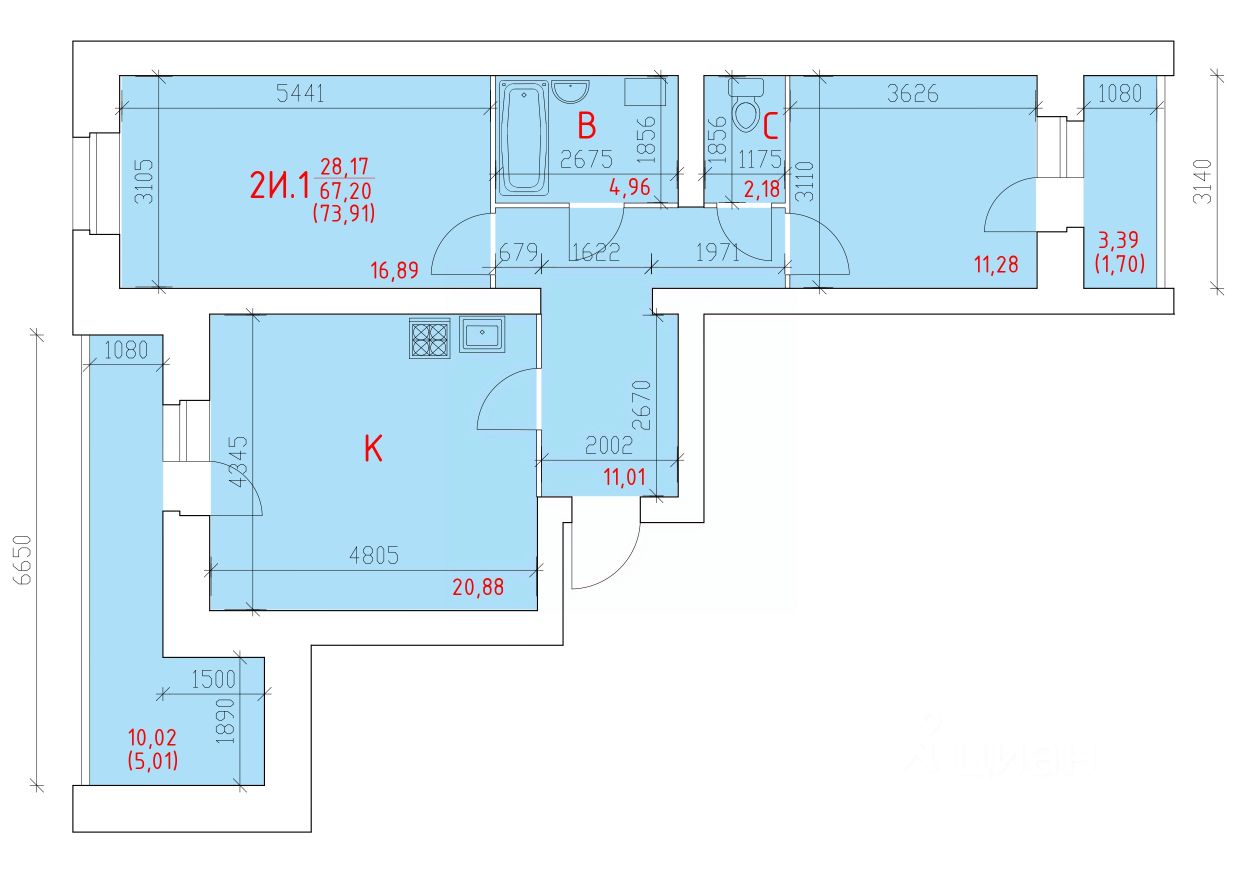 Продаётся 2-комнатная квартира в строящемся доме (Дом 23 - 2 этап), срок сдачи: IV-кв. 2026, общей площадью 73.91 кв.м., на 5 этаже.