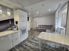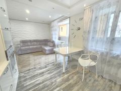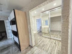 - Просторную кухню-гостиную площадью 22,6 квадратных метров дополняют готовый кухонный гарнитур и бытовая техника (за исключением холодильника), предоставляя новую владелице отличные условия для кулинарного творчества и семейных вечеров.