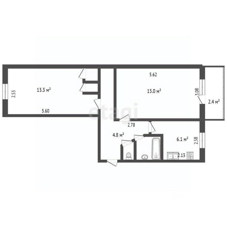 Продается двухкомнатная квартира общей площадью 44.7 кв.м, расположенная на четвертом этаже.