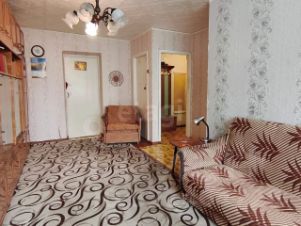 Двухкомнатная квартира площадью 42,9 кв. м расположена на четвертом этаже кирпичного дома в тихом районе.